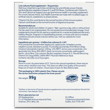 Mouthwateringly delicious gut health gummies. Includes your daily intake of Vitamin D, Zinc and Calcium plus friendly bacteria and FOS fibres.