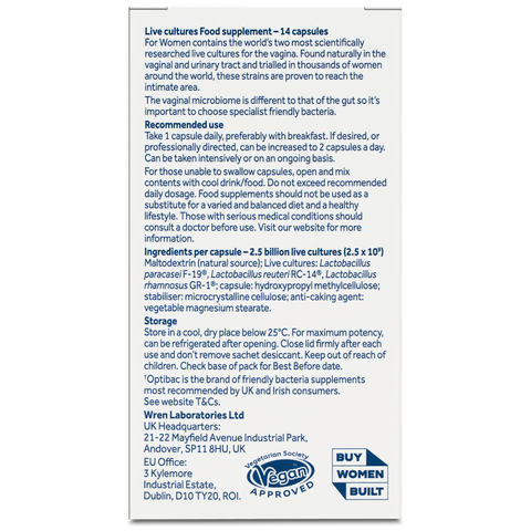 For Women contains friendly bacteria strains especially found in the vaginal & urinary tracts, scientifically proven to reach the intimate area, and to complement the vaginal flora. It is suitable for women of all ages, including during pregnancy, breastfeeding and menopause, and is backed by over 30 years of research.